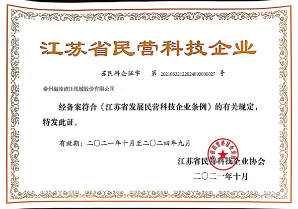 省級(jí)民營(yíng)企業(yè)科技證書